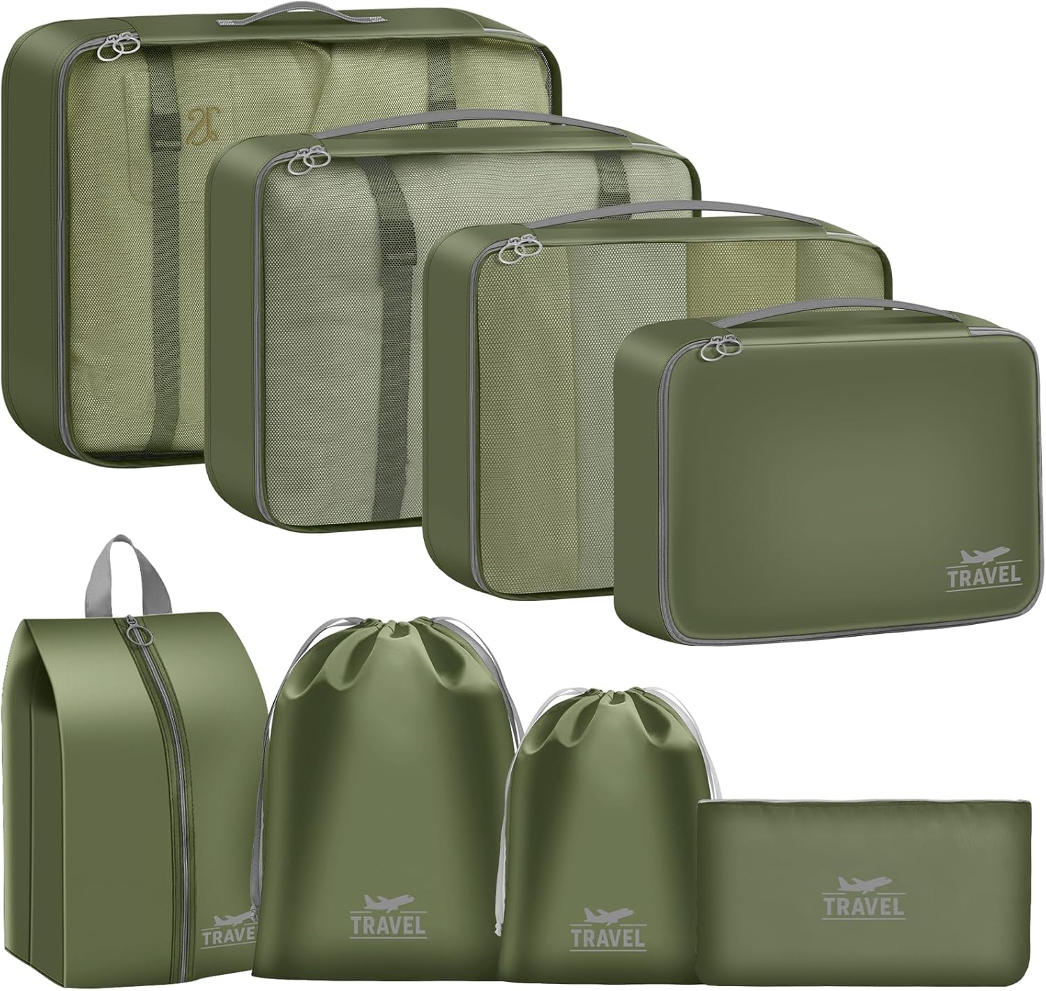 Un kit complet avec des sacs de tailles variées, parfait pour organiser vos vêtements, sous-vêtements, chaussures, articles de toilette, accessoires électroniques, serviettes, linge sale ou maquillage.